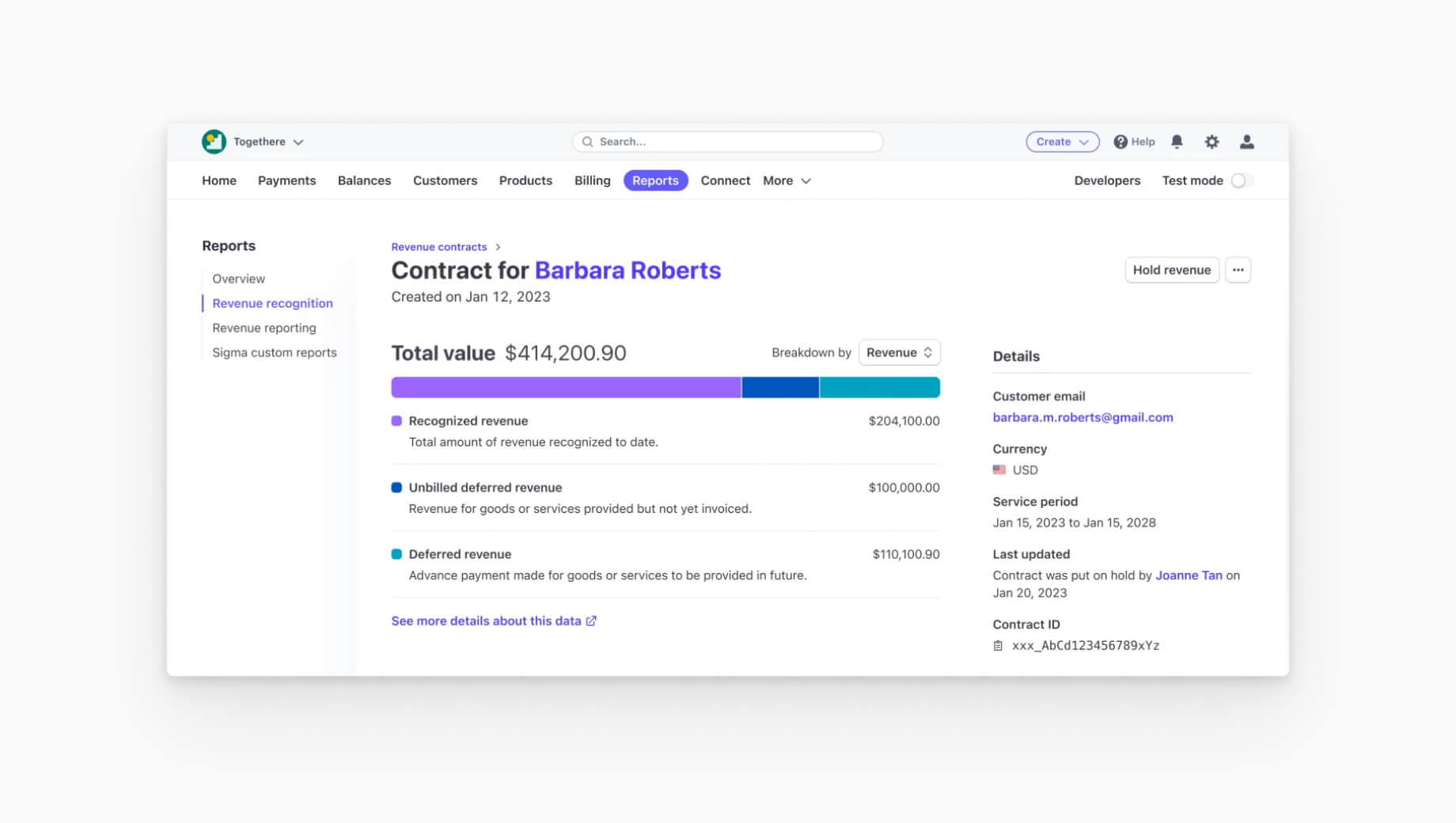 یکی از وقت گیرترین کارهای پشت آفیس، دقت است شناسایی درآمد در طول دوره های حسابداری Benefiq تشخیص درآمد این فرآیند را ساده می کند و اکنون ویژگی های بتا جدیدی دارد که کمک می کند برای خودکارسازی حسابداری با دقت و سفارشی سازی بیشتر. شما می توانید تصویر کامل تری از درآمد خود به دست آورید واردات و مدیریت قراردادهای درآمدی (تصویر زیر را ببینید) از طریق Stripe Billing Connector برای CPQ نیروی فروش. شما همچنین می توانید نمودار حساب های خود را سفارشی کنید برای ساده کردن حسابداری در سراسر سیستم ها. در نهایت، اضافی کسب و کارهای مبتنی بر پلت فرم در Stripe Connect اکنون می توانند از تشخیص درآمد. استفاده کند