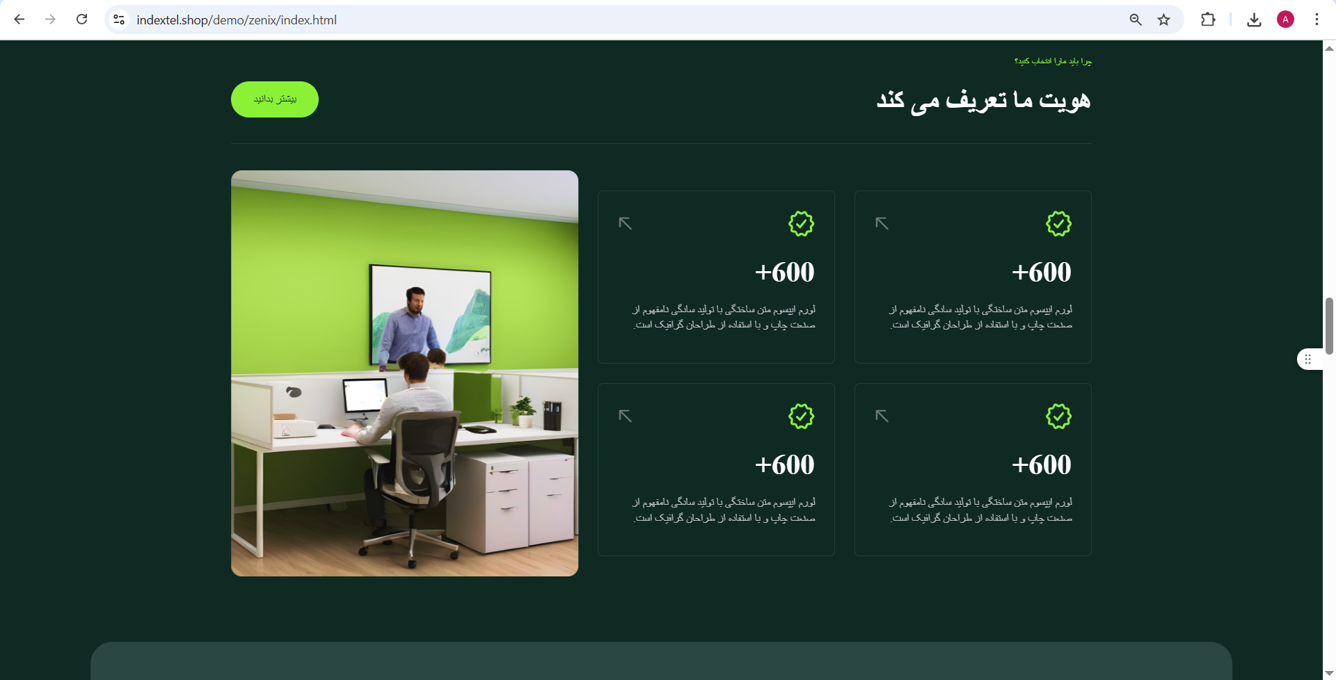 قالب شرکتی زنیکس با طراحی کاملاً ریسپانسیو و سازگار با تمامی دستگاهها، اطمینان میدهد که وبسایت شما به درستی بر روی تمامی دستگاهها (کامپیوتر، تبلت، موبایل) نمایش داده میشود.