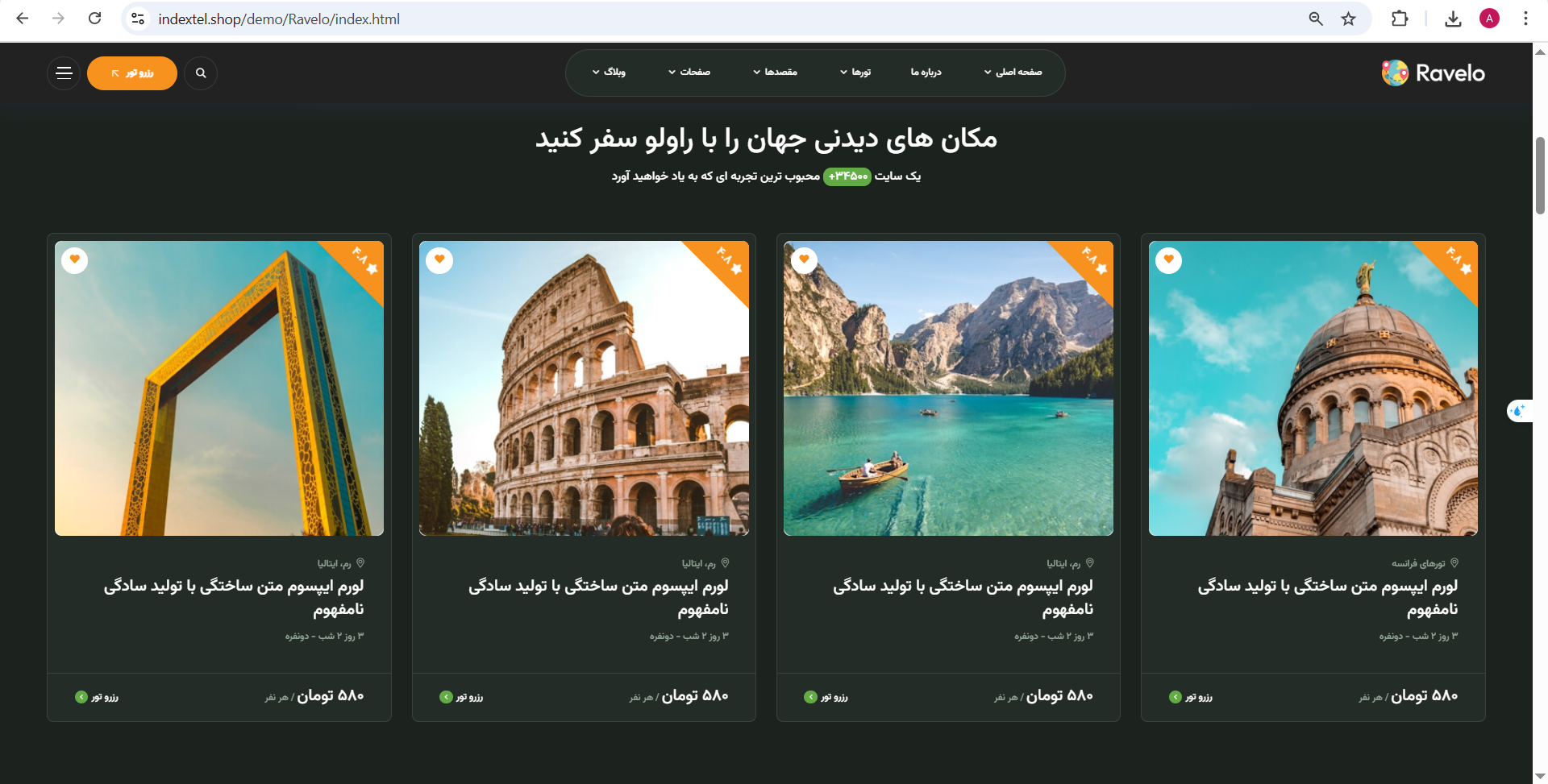 راولو یک قالب مدرن برای طراحی سایتهای رزرو تور و گردشگری است؛ این قالب برای آژانسهای مسافرتی، وبسایتهای رزرو تعطیلات سفر، و شرکتهای رزرواسیونی که به دنبال قابلیتهای خاص و کارآمد هستند، بسیار مناسب است.