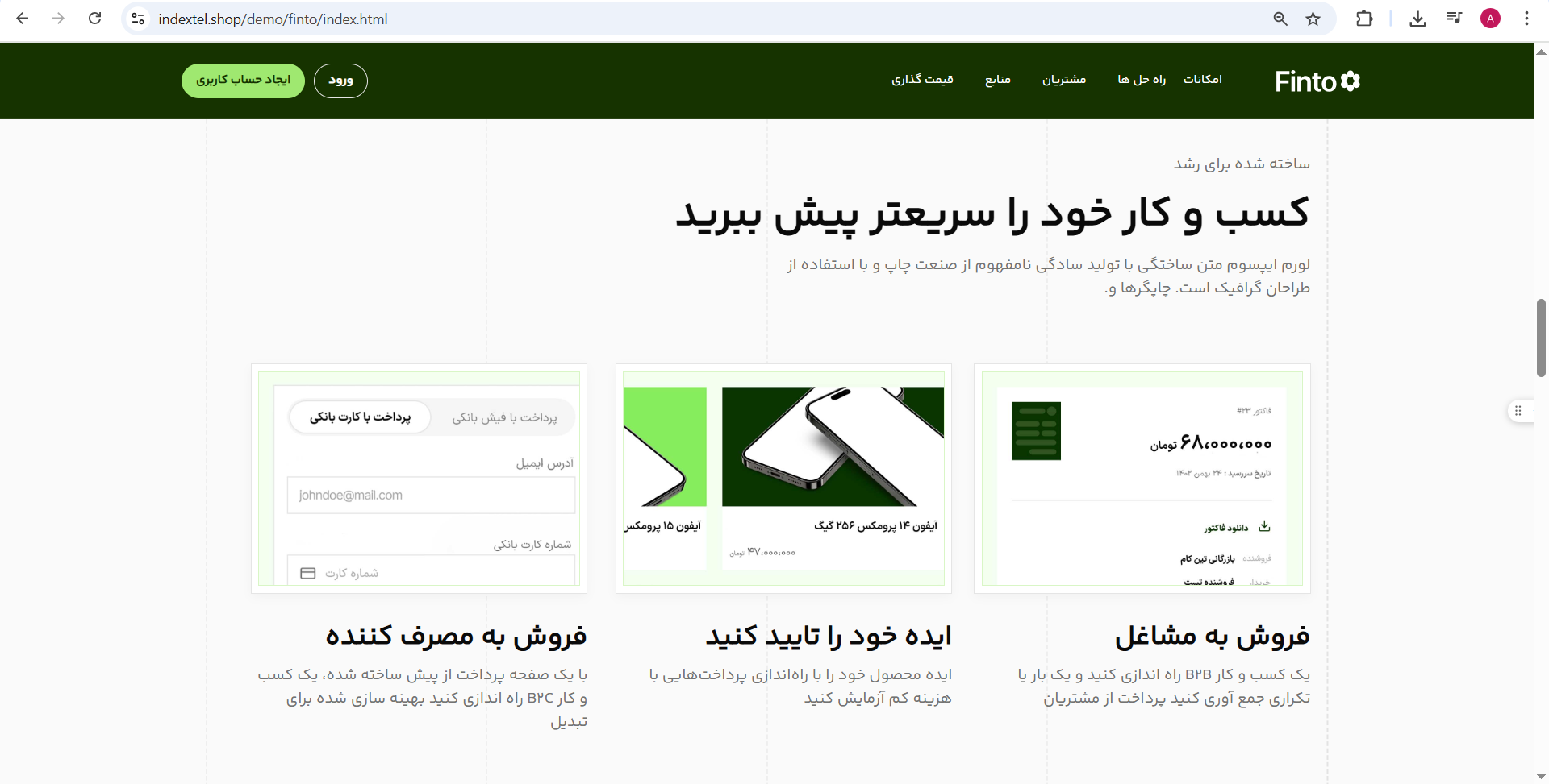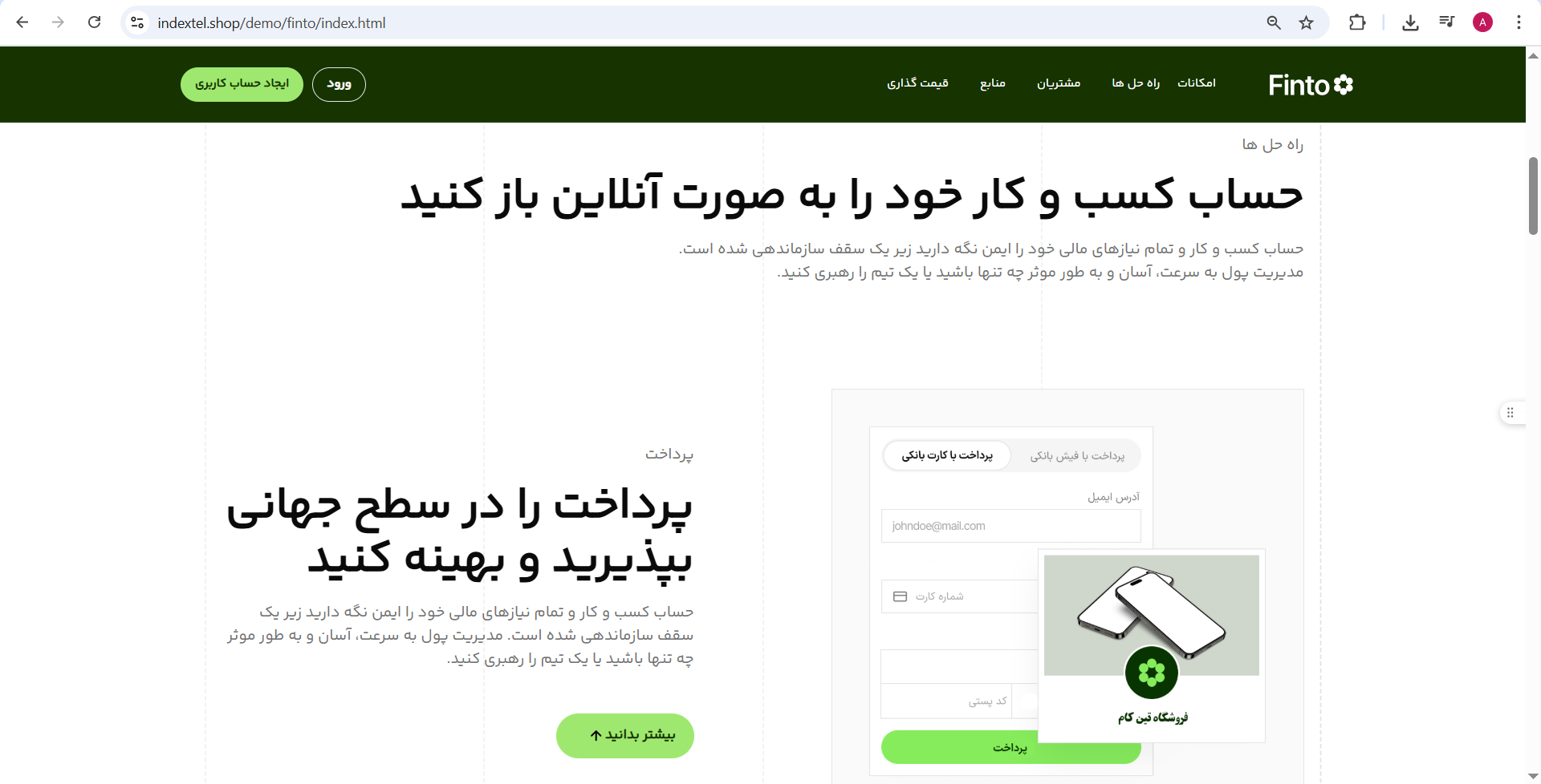 قالب HTML شرکتی فینتو یک قالب حرفهای است که به طور خاص برای کسب و کارها طراحی شده است. این قالب از امکانات بسیاری برخوردار است، از جمله طراحی کاملاً واکنشگرا که باعث میشود قالب به درستی در تمامی دستگاهها نمایش داده شود. همچنین، فینتو دارای انواع ویجتهای متنوعی است که به کاربران امکان میدهد براحتی از آنها استفاده کنند. قبل از خواند ادامۀ محتوا به شما پیشنهاد میکنیم در صورت تمایل به خرید انواع قالب HTML به صفحۀ قالب HTML مراجعه نمایید.