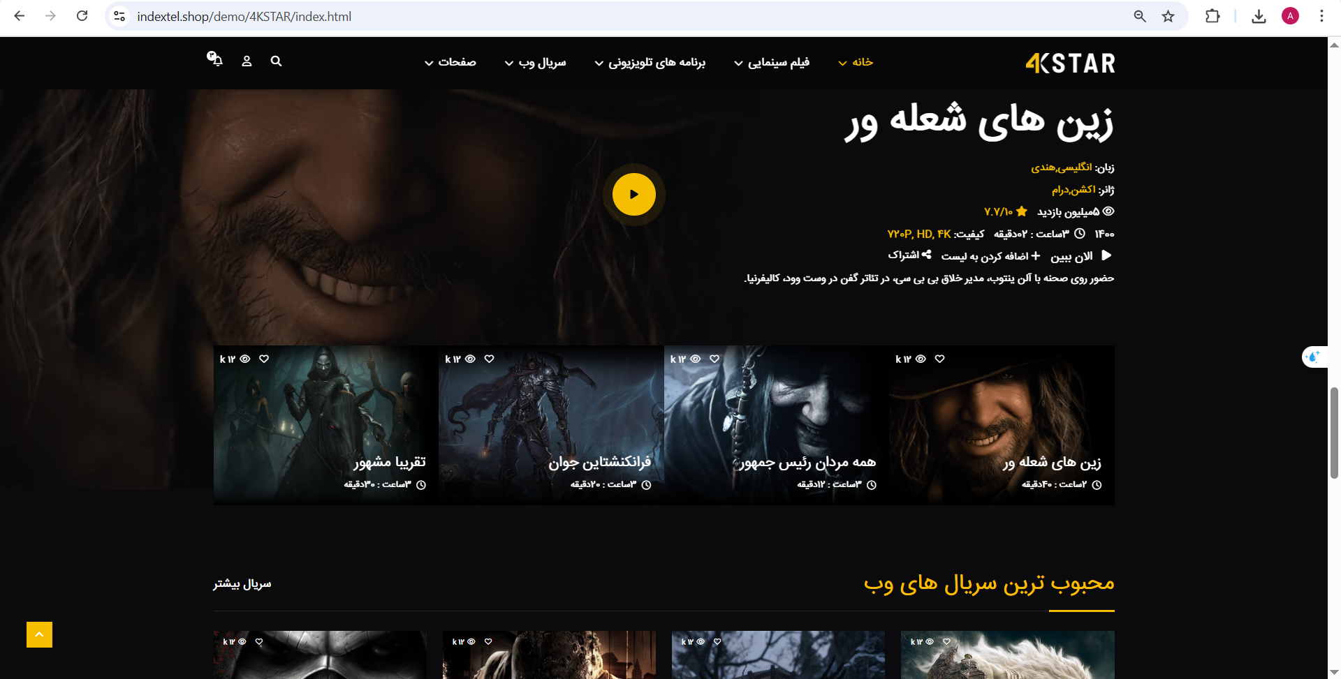 ویژگیهای قالب HTML فیلم و سریال فورکی استار