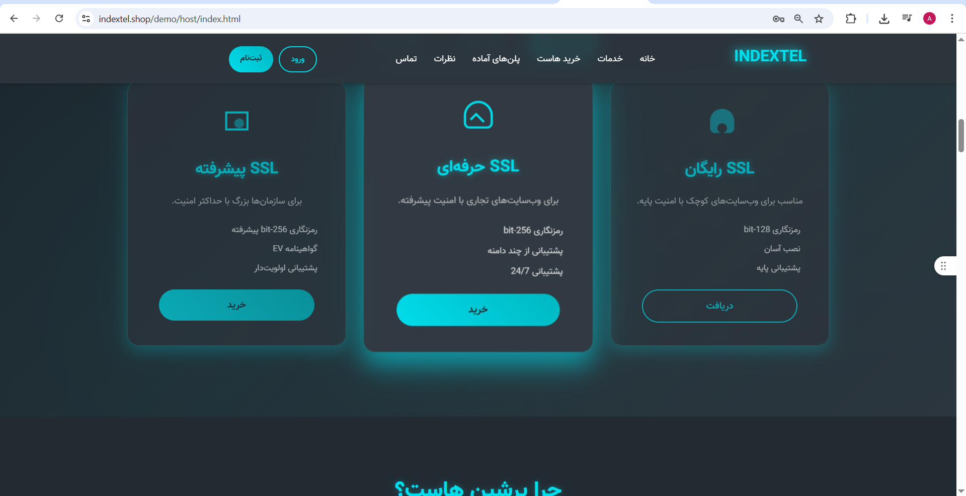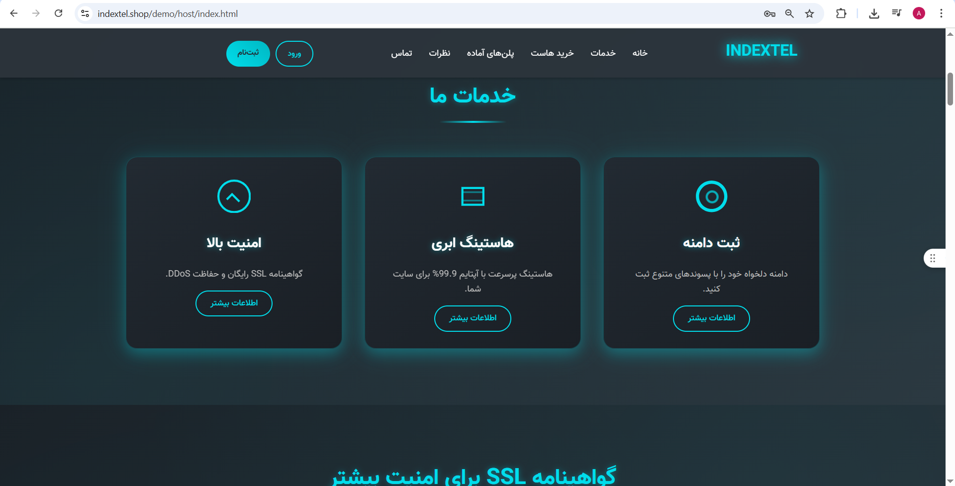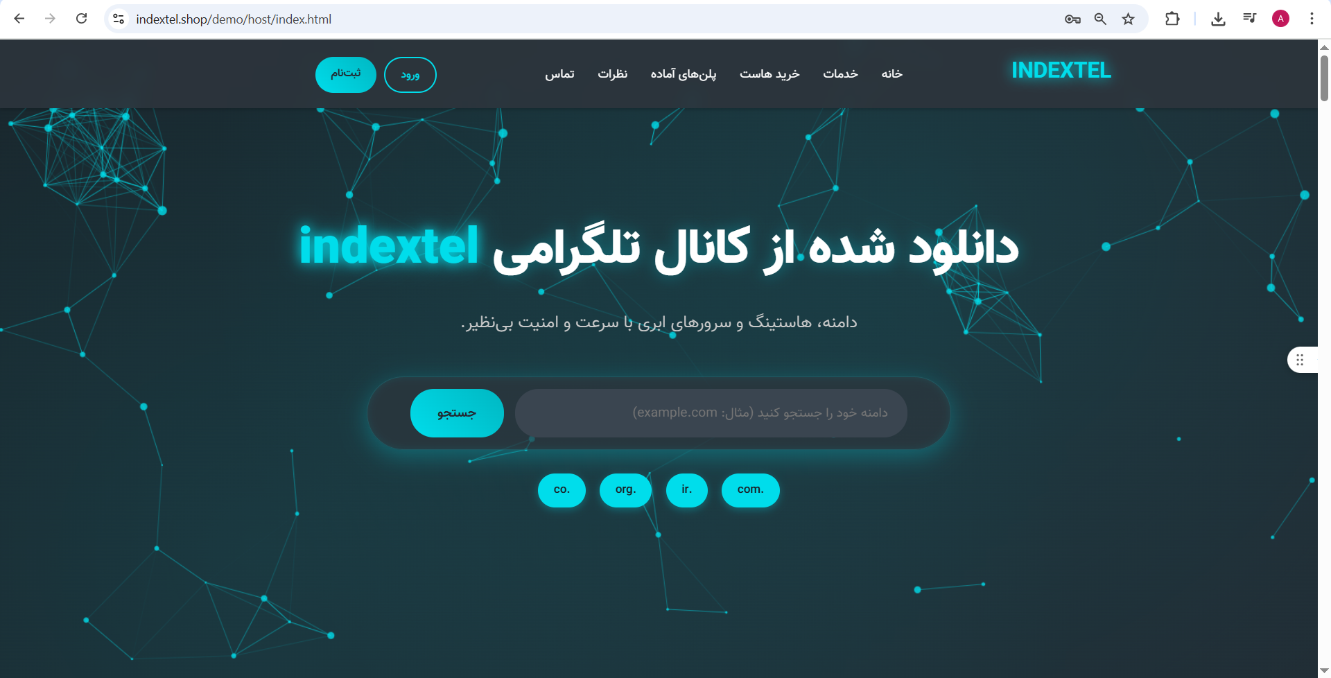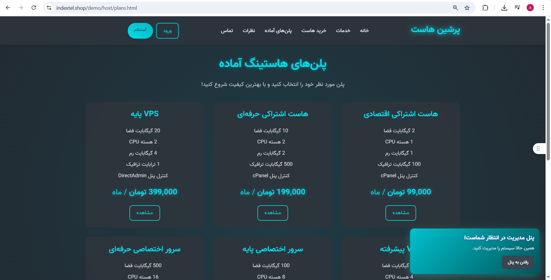 یک قالب با رنگ بندی، چیدمان، امکانات و استاندارهای لازم برای شرکت های ارائه دهنده خدمات هاست و دامنه و سرور و میزبانی وب با برگه های اختصاصی ویژه خدمات مربوط.