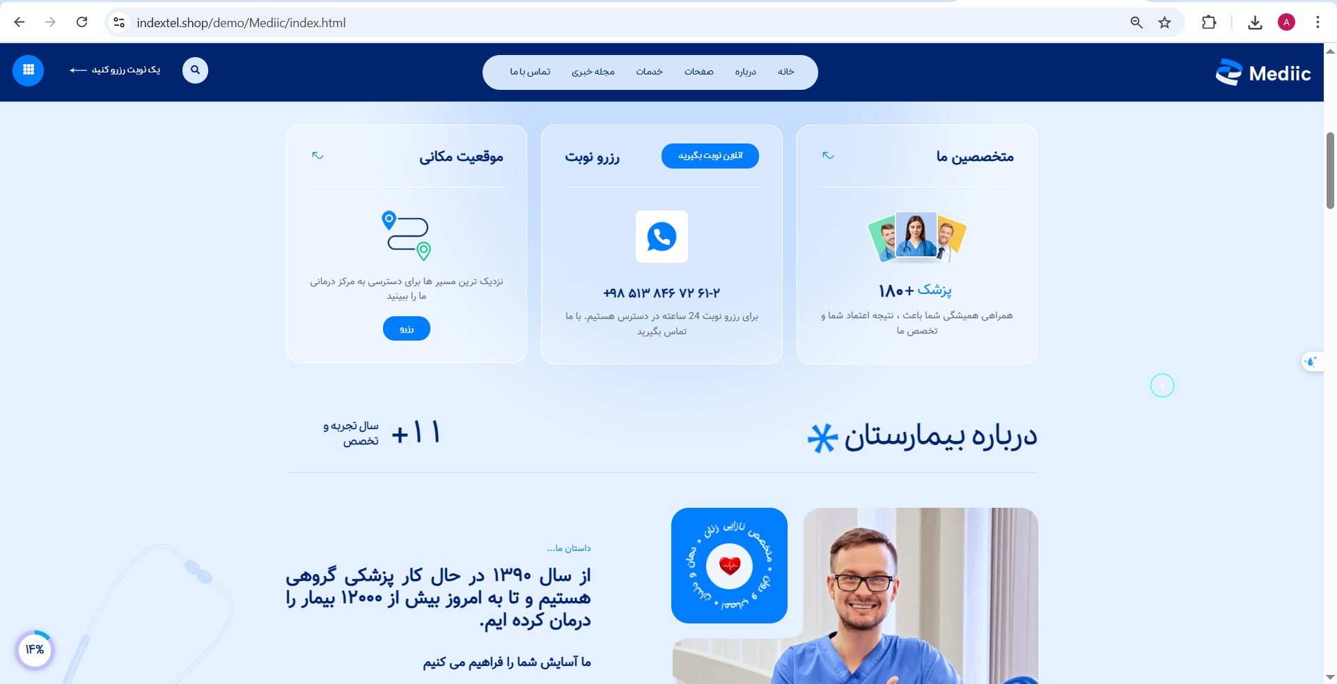 این قالب با داشتن تمامی ویژگیهایی که برای یک سایت پزشکی حرفهای نیاز است، شامل نمایش خدمات پزشکی، مطالب پزشکی، فرم تماس و رزرو وقت، نمایش نمونه کارهای پزشکی و قابلیت سفارشی سازی بالا، به شما کمک میکند تا وبسایت خود را به شکلی منحصر به فرد طراحی کنید و با جذب کاربران بیشتر، موفقیت بیشتری در حوزه پزشکی به دست آورید.