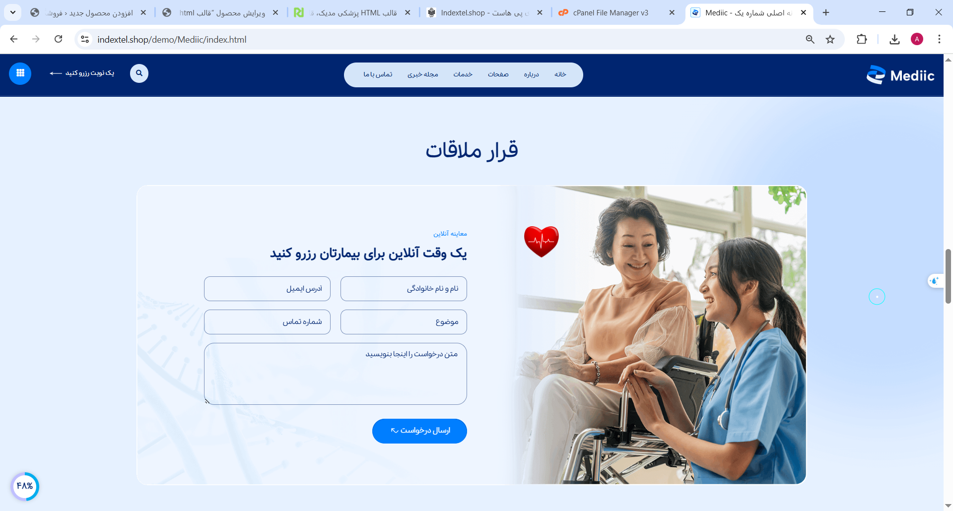 قالب مدیک با طراحی حرفهای و جذاب، به عنوان یکی از بهترین قالبهای html در حوزه پزشکی، برای تمامی مراکز پزشکی، بیمارستانها و کلینیکها مناسب است. با استفاده از قالب مدیک، شما میتوانید به راحتی وبسایت حرفهای و جذاب خود را طراحی کنید و خدمات پزشکی خود را به بهترین شکل به بیماران خود معرفی کنید.