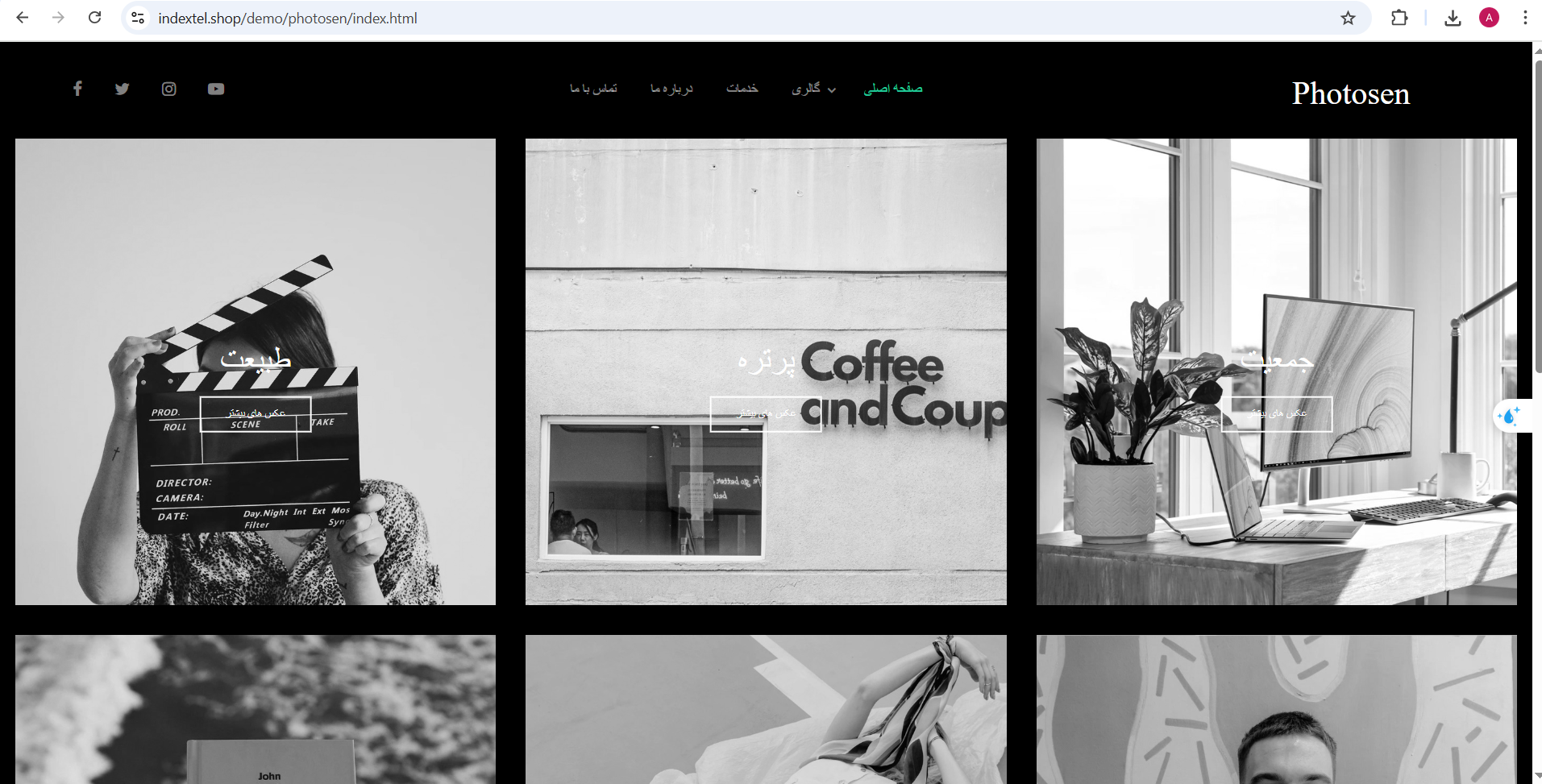 قالب photosen راست چین برای طراحی سایت حرفه ای نمونه کار و گالری برای انواع مشاغل مانند عکاسان، گرافیست ها و غیره مناسب است.