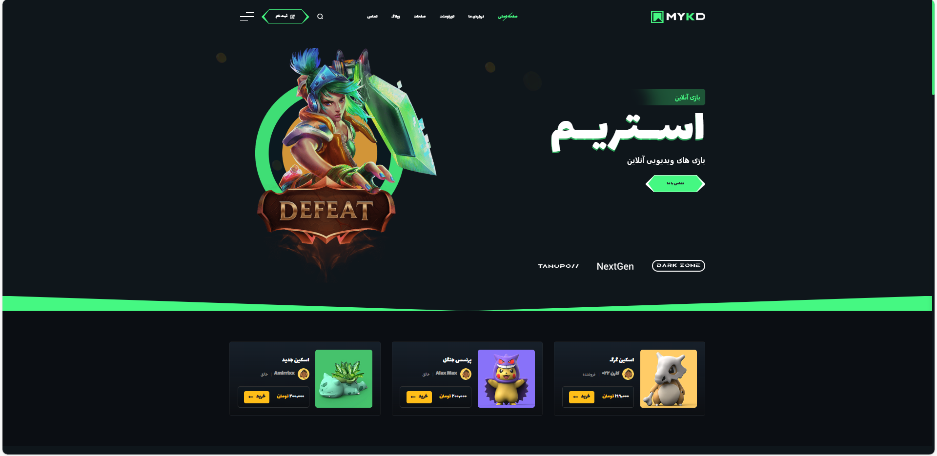 قالب MYKD با الهام از دنیای پرهیجان بازیهای دیجیتال طراحی شده است. رنگبندی جذاب، انیمیشنهای چشمنواز و المانهای گرافیکی مرتبط با گیمینگ، تجربهای منحصر به فرد برای کاربران ایجاد میکند. از صفحه اصلی گرفته تا بخشهای تخصصی مانند جدول ردهبندی بازیکنان، هر جزء این قالب با دقت برای ارائه بهترین عملکرد بهینهسازی شده است. سایر ویژگیها و امکانات این قالب عبارتند از: