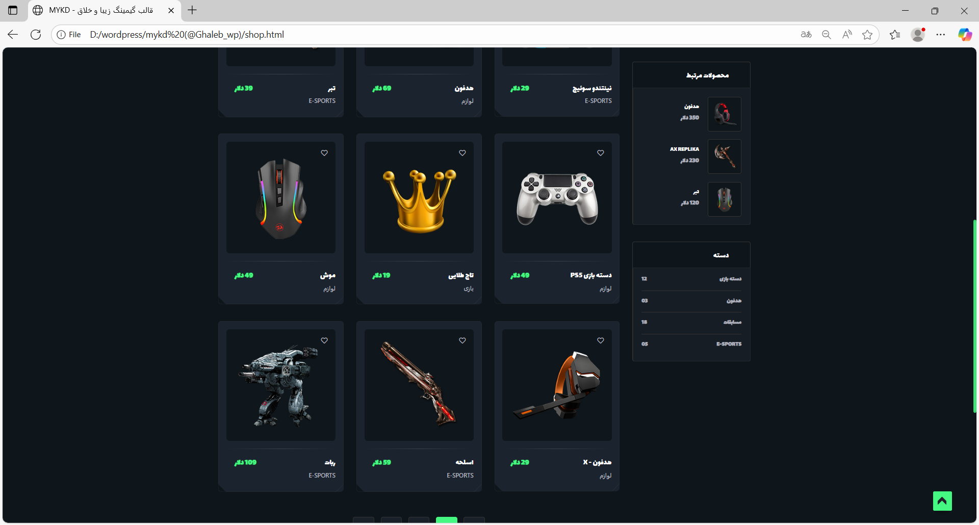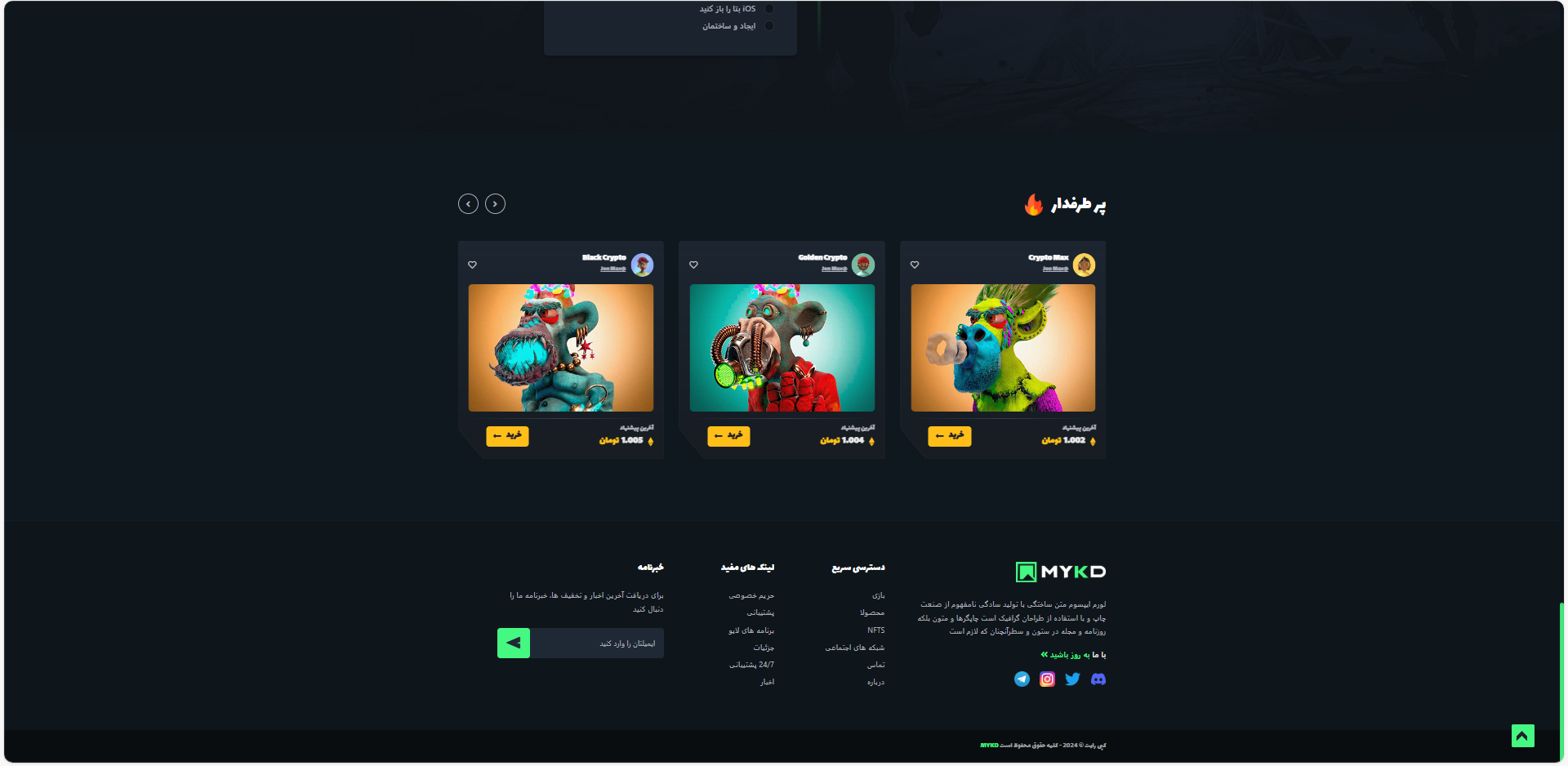 قالب MYKD، یک قالب HTML پیشرفته و اختصاصی است که برای طراحی وبسایتهای بازیهای ویدیویی، NFT، مجلهای، وبلاگی و خبری یک انتخاب ایدهآل است. این قالب ۲ دموی زیبا و جذاب دارد که تمام نیازهای وبسایت حرفهای گیمینگ را پوشش میدهد؛ صفحات این قالب شامل صفحات فروشگاه گیمینگ، صفحات اخبار و تورنمنت و تیم میباشند.