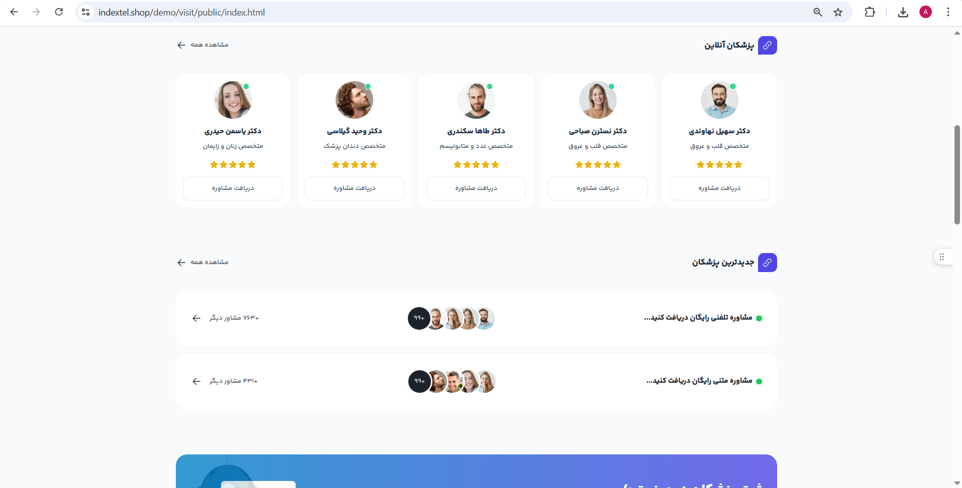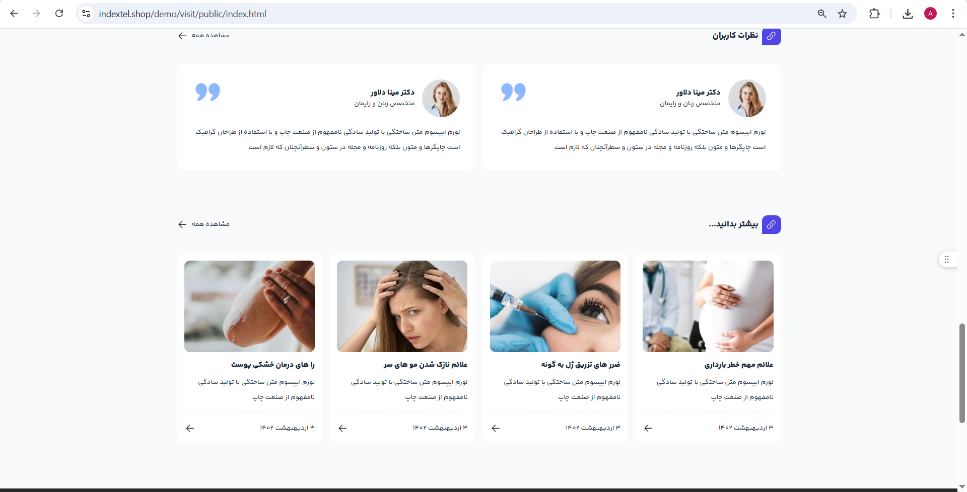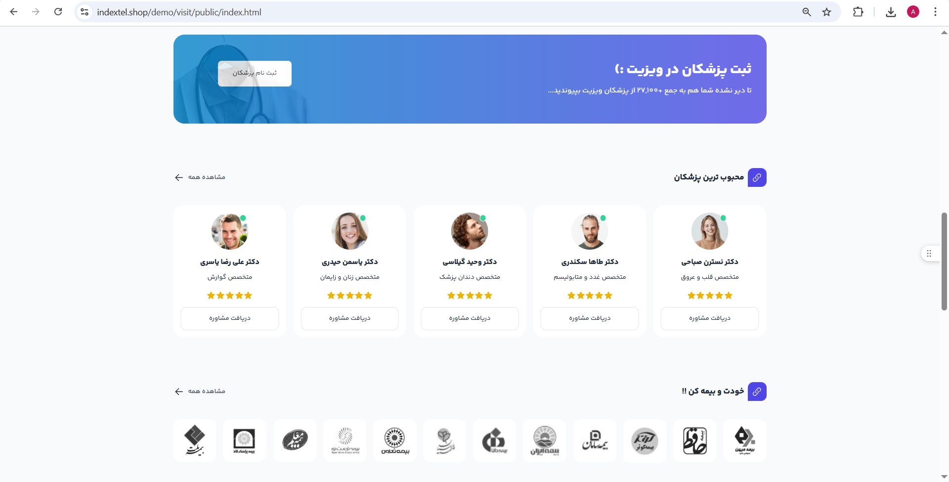 این قالب پزشکی و رزرو نوبت حدود 21 صفحه دارد که عبارتند از: