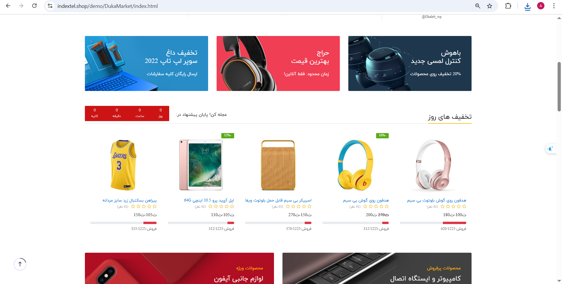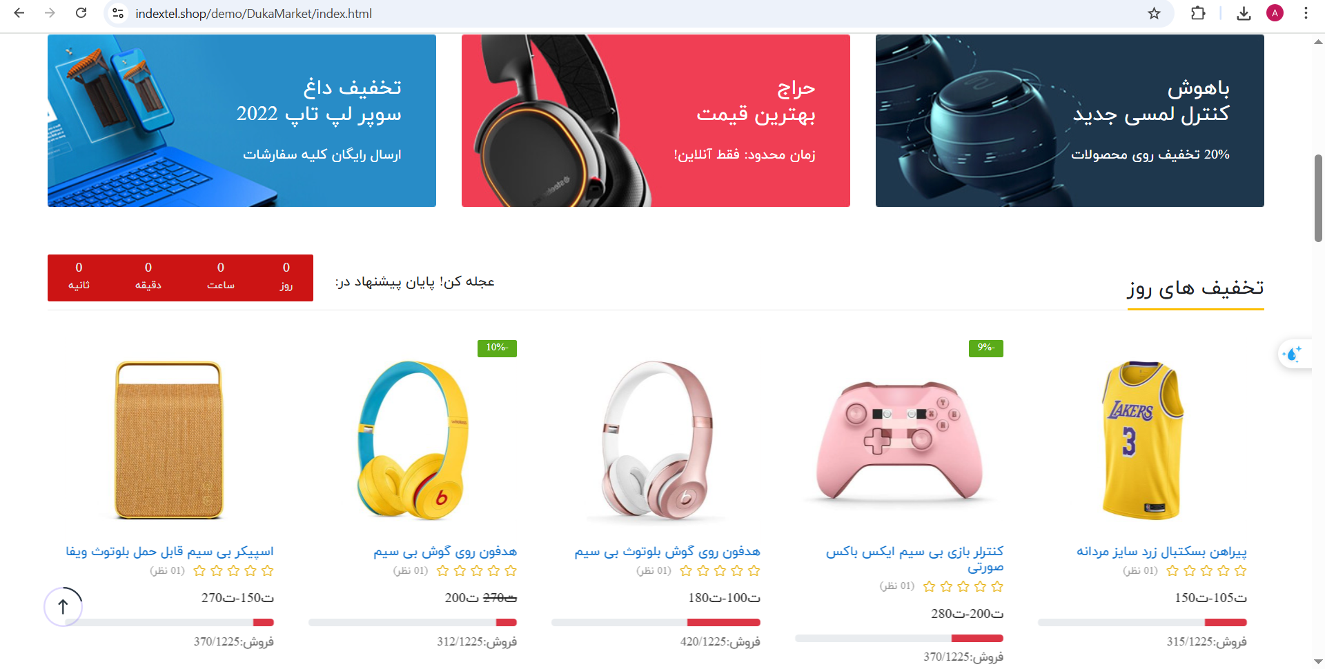 قالب DukaMarket یک قالب HTML فروشگاهی چند منظوره (مد، پوشاک، عینک آفتابی، لوازم جانبی، فروشگاه بزرگ، ساعت، لوازم آرایشی و…) است که بهصورت فارسی و راستچین در اختیار شما قرار گرفته است.